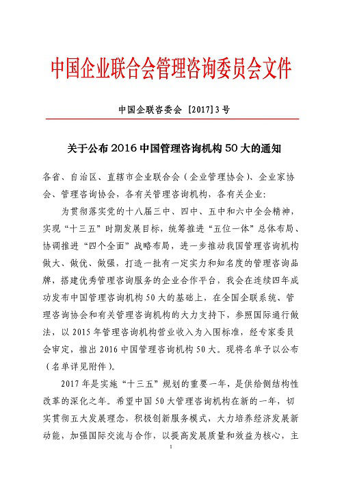 近日,中国企业联合会管理咨询委员会颁布了2016中国管理咨询机构50强名单,半岛在线注册排名第 46位.