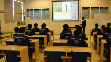设施上,除了必要的投影仪、白板外,最大的亮点就是将检查台、作业台、简易设备等纳入培训室,构建了一个五脏俱全的现场.在这个培训室里,不单单是理论的学习,更多的是现学现用活学活用,这样的培训室不正是新型企业培训室的代表吗?